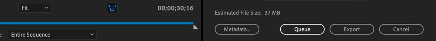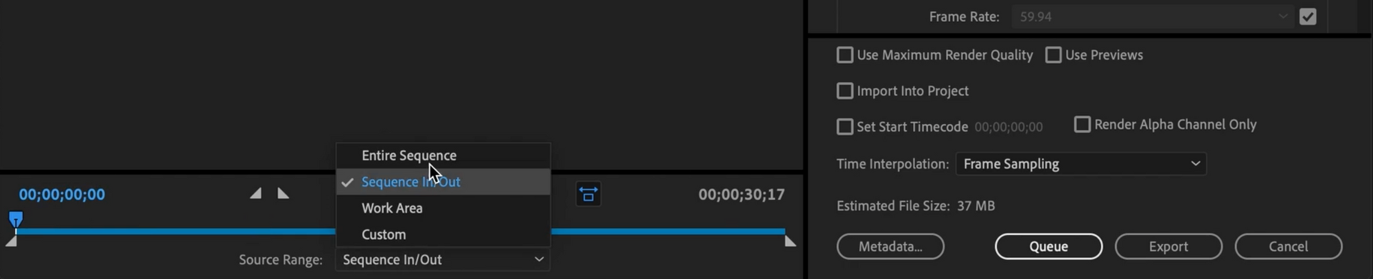 6. Choose 'Entire Sequence'. or 'In to Out Point'.