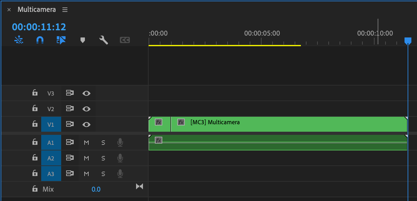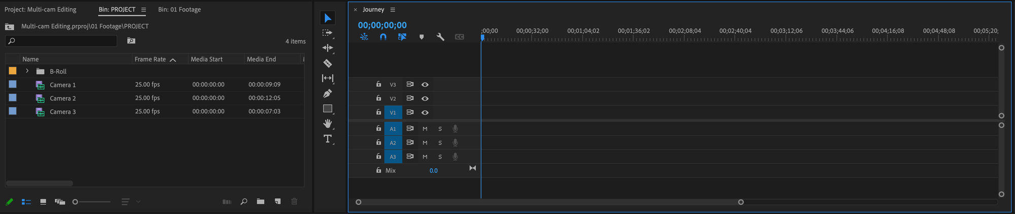 - Open Multicamera View but Clicking on the 'Toggle Multi-Cam View' icon below your Program monitor.